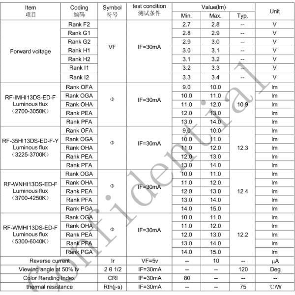 4. the above luminous flux measurement allowance tolerance ±10%.
