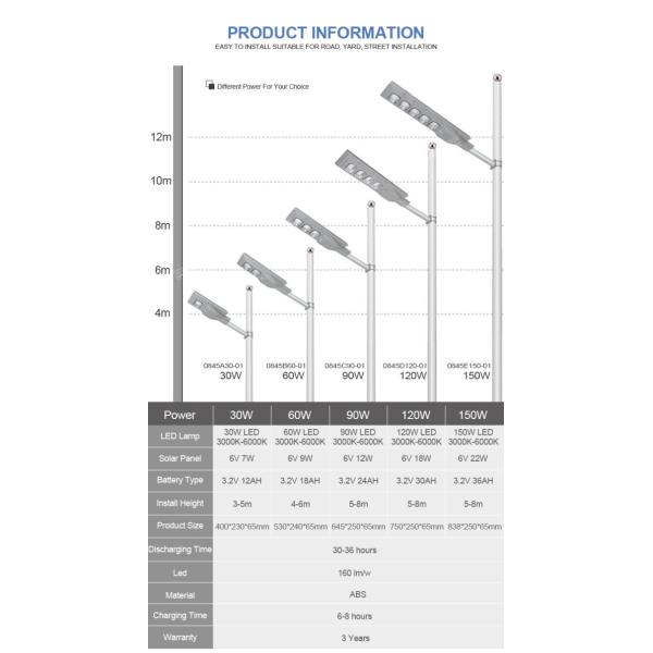 Integrated Solar Road Lamp 30w 60w 90w 120w 150w All In One Outdoor Solar LED Street Light Images |